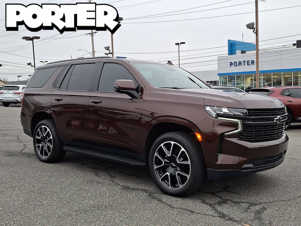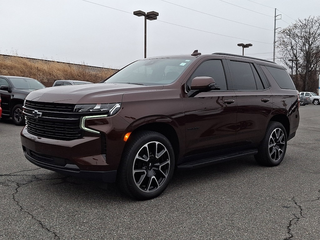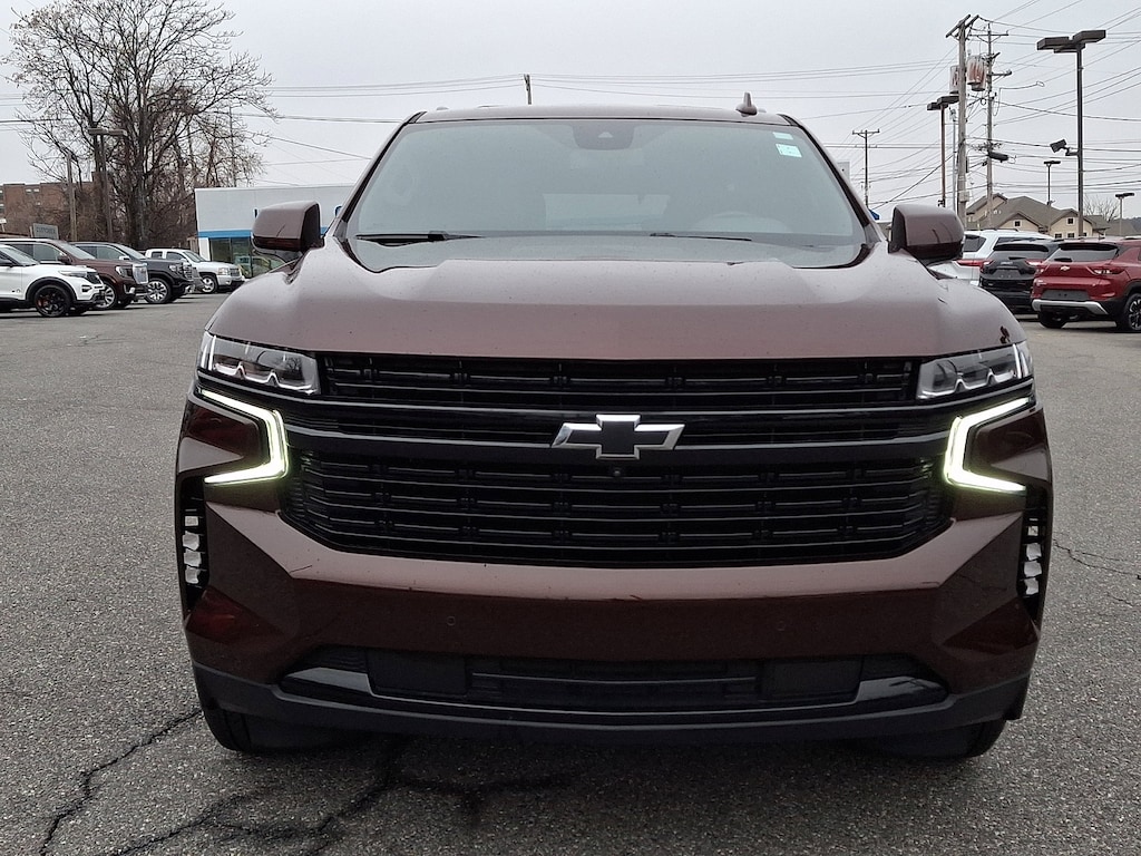 ADAPTIVE CRUISE CONTROL, REAR AXLE 3.23 RATIO, LANE CHANGE ALERT WITH SIDE BLIND ZONE ALERT, TIRES 275/50R22SL ALL-SEASON BLACKWALL, SEATS SECOND ROW BUCKET POWER RELEASE, MEMORY SETTINGS RECALLS 2 DRIVER PRESETS FOR POWER DRIVER SEAT OUTSIDE REARVIEW MIRRORS AND POWER AND TILT AND TELESCOPIC STEERING COLUMN, RST PREFERRED EQUIPMENT GROUP includes standard equipment, ENHANCED AUTOMATIC EMERGENCY BRAKING, SEATS THIRD ROW 60/40 SPLIT-BENCH POWER FOLDING, TRANSMISSION 10-SPEED AUTOMATIC electronically controlled with overdrive includes Traction Select System including tow/haul (Standard with (L84) 5.3L EcoTec3 V8 engine only or (L87) 6.2L EcoTec3 V8 engine only.) (STD), SEATS HEATED SECOND ROW OUTBOARD SEATS, SUSPENSION PACKAGE PREMIUM SMOOTH RIDE (STD), WHEELS 22 X 9 (55.9 CM X 22.9 CM) BRIGHT MACHINED HIGH-GLOSS BLACK PAINTED (Includes (SFE) wheel locks LPO.) (STD), SUNROOF POWER PANORAMIC DUAL-PANE TILT-SLIDING with express-open and close and power sunshade, AUDIO SYSTEM CHEVROLET INFOTAINMENT 3 PREMIUM SYSTEM WITH GOOGLE BUILT-IN 10.2 diagonal HD color touchscreen includes multi-touch display AM/FM stereo Bluetooth streaming audio for music and most phones; featuring wireless Android Auto and Apple CarPlay capability for compatible phones advanced voice recognition in-vehicle apps personalized profiles for infotainment and vehicle settings (STD), STEERING COLUMN POWER TILT AND TELESCOPIC, LUXURY PACKAGE includes (WPD) Driver Alert Package content (UV2) HD Surround Vision (UKK) Rear Pedestrian Alert (A45) memory settings (DXR) outside heated power-adjustable power-folding body-color mirrors with driver-side auto-dimming and integrated turn signal indicators (N38) power tilt and telescopic steering column (KI3) heated steering wheel (KA6) second row outboard heated seats (ATT) second row power 60/40 split-folding bench seats and (AS8) third row power 60/40 split-folding bench seats Also includes (KSG) Adaptive Cruise Control and (UGN) Enhanced Automatic Emergency Braking., ENGINE 5.3L ECOTEC3 V8 with Dynamic Fuel Management Direct Injection and Variable Valve Timing includes aluminum block construction (355 hp [265 kW] @ 5600 rpm 383 lb-ft of torque [518 Nm] @ 4100 rpm) (STD), MIRRORS OUTSIDE HEATED POWER-ADJUSTABLE POWER-FOLDING DRIVER-SIDE AUTO-DIMMING integrated turn signal indicators and puddle lighting, AUBURN METALLIC, HD SURROUND VISION, SEATS FRONT BUCKET (STD), NOT EQUIPPED WITH WHEEL LOCKS LPO see dealer for details. (Beginning with start of production certain vehicles will be forced to include (RFV) Not Equipped with (SFE) Wheel Locks LPO which removes (SFE) Wheel Locks LPO. Does not include later dealer retrofit. See the window label for the features on a specific vehicle.), REAR CROSS TRAFFIC ALERT, GVWR 7500 LBS. (3402 KG) (STD), STEERING WHEEL HEATED, JET BLACK/VICTORY RED PERFORATED LEATHER SEATING SURFACES 1ST AND 2ND ROW (Interior color has lighter/darker two-tone effect.), REAR PEDESTRIAN ALERT, DRIVER ALERT PACKAGE includes (UKC) Lane Change Alert with Side Blind Zone Alert and (UFG) Rear Cross Traffic Alert, Immobilizer, Keyless Start, Locking/Limited Slip Differential, Four Wheel Drive, Tow Hitch, Power Steering, ABS, 4-Wheel Disc Brakes, Aluminum Wheels, Tires - Front Performance, Tires - Rear Performance, Conventional Spare Tire, Conventional Spare Tire, Luggage Rack, Running Boards/Side Steps, Automatic Highbeams, Heated Mirrors, Power Mirror(s), Privacy Glass, Intermittent Wipers, Variable Speed Intermittent Wipers, Rain Sensing Wipers, Intermittent Wipers, Remote Trunk Release, Power Liftgate, AM/FM Stereo, MP3 Capability, Bluetooth Connection, Auxiliary Audio Input, Smart Device Integration, Premium Sound System, MP3 Capability, Bluetooth Conn