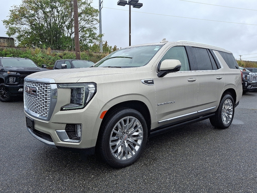 LICENSE PLATE FRONT MOUNTING PACKAGE, TIRES 275/50R22SL ALL-SEASON BLACKWALL, SUNROOF POWER PANORAMIC DUAL-PANE tilt-sliding with express-open and close and power sunshade, TEAK/LIGHT SHALE PERFORATED LEATHER SEATING SURFACES (Interior color has lighter/darker two-tone effect.), PEARL BEIGE METALLIC, REAR AXLE 3.23 RATIO, AUDIO SYSTEM 10.2 DIAGONAL PREMIUM GMC INFOTAINMENT SYSTEM WITH GOOGLE BUILT-IN includes color touch-screen multi-touch display AM/FM stereo Bluetooth streaming audio for music and most phones; featuring wireless Android Auto and Apple CarPlay capability for compatible phones advanced voice recognition in-vehicle apps personalized profiles for infotainment and vehicle settings (STD), ENGINE 6.2L ECOTEC3 V8 with Dynamic Fuel Management Direct Injection and Variable Valve Timing includes aluminum block construction (420 hp [313 kW] @ 5600 rpm 460 lb-ft of torque [624 Nm] @ 4100 rpm) (STD), ASSIST STEPS POWER-RETRACTABLE WITH PERIMETER LIGHTING, WHEELS 22 X 9 (55.9 CM X 22.9 CM) POLISHED ALUMINUM (Includes (SFE) wheel locks LPO.), DENALI PREFERRED EQUIPMENT GROUP Includes Standard Equipment, GVWR 7500 LBS. (3402 KG) (STD), TRANSMISSION 10-SPEED AUTOMATIC electronically controlled with overdrive includes Traction Select System including tow/haul (STD), SEATS FRONT BUCKET (STD), LPO WHEEL LOCKS SET OF 4 (dealer-installed), Rear Parking Aid, Blind Spot Monitor, Lane Departure Warning, Cross-Traffic Alert, Lane Keeping Assist, Front Collision Mitigation, Front Collision Warning, Automatic Highbeams, Keyless Start, Locking/Limited Slip Differential, Four Wheel Drive, Tow Hitch, Active Suspension, Power Steering, ABS, 4-Wheel Disc Brakes, Aluminum Wheels, Tires - Front All-Season, Tires - Rear All-Season, Conventional Spare Tire, Conventional Spare Tire, Luggage Rack, Running Boards/Side Steps, Fog Lamps, Heated Mirrors, Power Mirror(s), Integrated Turn Signal Mirrors, Power Folding Mirrors, Privacy Glass, Intermittent Wipers, Variable Speed Intermittent Wipers, Rain Sensing Wipers, Remote Trunk Release, Power Liftgate, AM/FM Stereo, MP3 Capability, Bluetooth Connection, Auxiliary Audio Input, Smart Device Integration, MP3 Capability, Bluetooth Connection, Auxiliary Audio Input, Premium Sound System, Satellite Radio, Requires Subscription, WiFi Hotspot, Bucket Seats, Bluetooth Connection, Smart Device Integration, Leather Seats, Mirror Memory, Seat Memory, Bucket Seats, Rear Bucket Seats, 3rd Row Seat, Pass-Through Rear Seat, Heated Front Seat(s), Heated Front Seat(s), Cooled Front Seat(s), Heated Rear Seat(s), Power Driver Seat, Power Passenger Seat, Driver Adjustable Lumbar, Passenger Adjustable Lumbar, Floor Mats, Adjustable Steering Wheel, Heated Steering Wheel, Cruise Control, Steering Wheel Audio Controls, Front Collision Warning, Heads-Up Display, Power Windows, Power Windows, Power Windows, Power Door Locks, Keyless Entry, Power Door Locks, Remote Engine Start, Cruise Control, Adaptive Cruise Control, Universal Garage Door Opener, MP3 Capability, Auxiliary Audio Input, Climate Control, Multi-Zone A/C, A/C, Rear A/C, A/C, Rear A/C, Rear Defrost, Security System, Auto-Dimming Rearview Mirror, Driver Vanity Mirror, Passenger Vanity Mirror, Driver Illuminated Vanity Mirror, Passenger Illuminated Visor Mirror, Brake Assist, Front Collision Mitigation, Front Collision Warning, Traction Control, Stability Control, Brake Assist, Automatic Highbeams, Daytime Running Lights, Driver Air Bag, Passenger Air Bag, Front Side Air Bag, Front Head Air Bag, Rear Head Air Bag, Passenger Air Bag Sensor, Telematics, Requires Subscription, Front Collision Mitigation, Rear Parking Aid, Cross-Traffic Alert, Front Collision Warning, Lane Departure Warning, Lane Keeping Assist, Back-Up Camera, Aerial View Display System, Blin