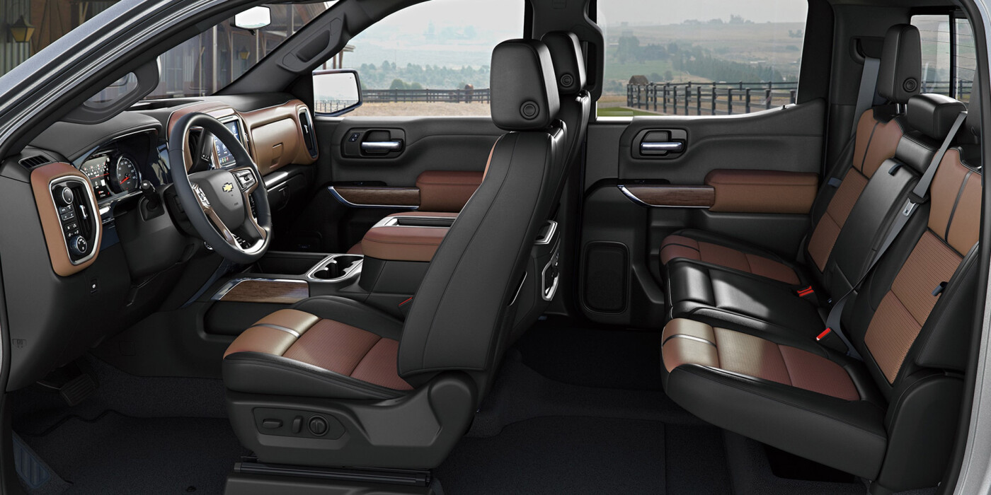The interior of the Chevy Silverado 2500 features a massive dashboard that's loaded with switchgear that's easy to use. At higher trim levels, you'll get a heated heated steering wheel along with a head-up display. Some trims can be equipped with a storage compartment under the back seat and bins built into the backs of the rear-seat cushions.
