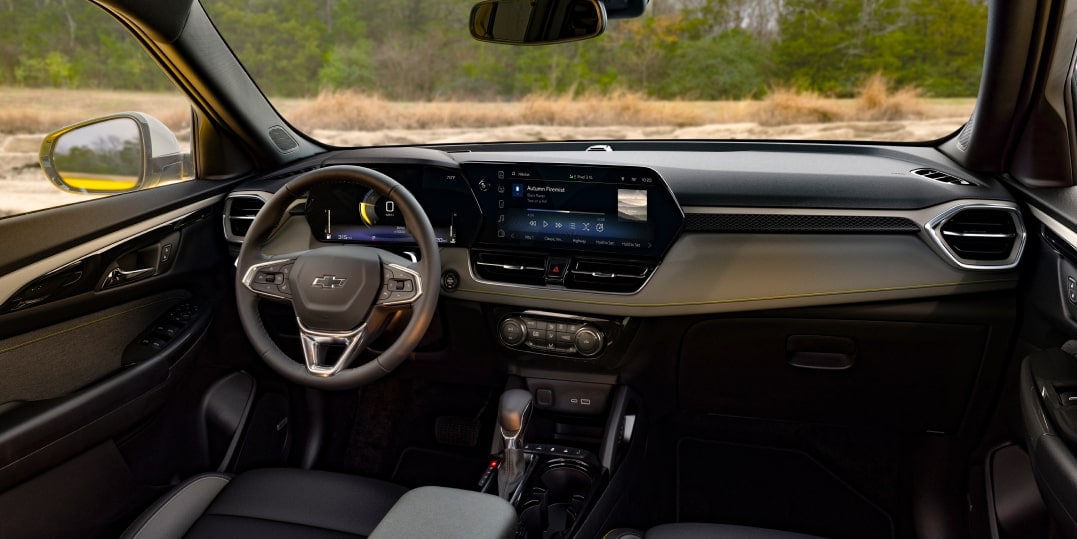 The Trailblazer's standard and available interior features include 60/40 split-folding rear seating, an auto-dimming rearview mirror, cloth seat trim, heated front seats, a heated steering wheel, and a six-way manual driver's seat.
