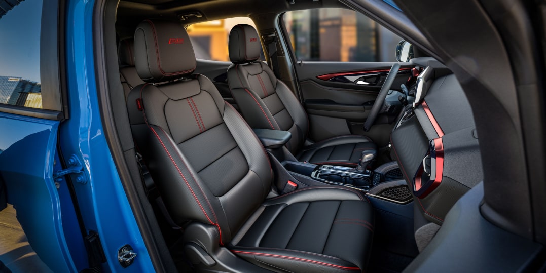 The Trailblazer's RS trim has a 1.3-liter engine, a flat-bottom steering wheel, 19-inch wheels, and heated front seats.