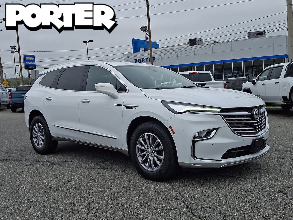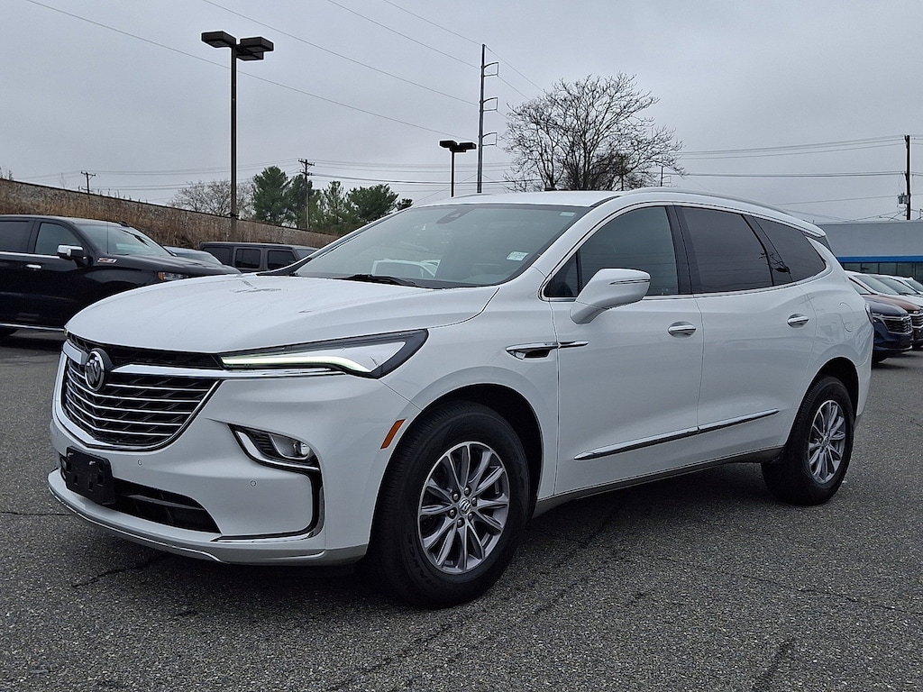 SUMMIT WHITE (Includes Satin Nickel lower exterior accent color.), LICENSE PLATE BRACKET FRONT MOUNTING PACKAGE, SEATS FRONT BUCKETS (STD), LPO FLOOR LINER PACKAGE includes (RIA) first and second row All-weather floor liners LPO (RIB) third row All-weather floor liner LPO and (CAV) Integrated cargo liner LPO, WHEELS 18 (45.7 CM) ALUMINUM (STD), LPO INTEGRATED CARGO LINER, LPO ALL-WEATHER FLOOR LINER THIRD ROW, DARK GALVANIZED WITH EBONY INTERIOR ACCENTS PERFORATED LEATHER-APPOINTED SEATS, LPO ALL-WEATHER FLOOR LINERS FIRST AND SECOND ROWS, TRANSMISSION 9-SPEED AUTOMATIC (STD), AXLE 3.49 FINAL DRIVE RATIO, TIRES 255/65R18 SL ALL-SEASON BLACKWALL (STD), ENGINE 3.6L V6 SIDI VVT STOP/START (310 hp [231 kW] @ 6800 rpm 266 lb-ft of torque [359 N-m] @ 2800 rpm) (STD), AUDIO SYSTEM 8 DIAGONAL BUICK INFOTAINMENT SYSTEM includes multi-touch display AM/FM/SiriusXM stereo Bluetooth streaming audio for music and most phones Android Auto and Apple CarPlay capability for compatible phones advanced voice recognition in-vehicle apps personalized profiles for infotainment and vehicle settings (STD), ESSENCE PREFERRED EQUIPMENT GROUP Includes Standard Equipment, Rear Parking Aid, Blind Spot Monitor, Lane Departure Warning, Cross-Traffic Alert, Lane Keeping Assist, Front Collision Mitigation, Front Collision Warning, Automatic Highbeams, Keyless Start, All Wheel Drive, Power Steering, ABS, 4-Wheel Disc Brakes, Aluminum Wheels, Tires - Front All-Season, Tires - Rear All-Season, Temporary Spare Tire, Rear Spoiler, Heated Mirrors, Power Mirror(s), Integrated Turn Signal Mirrors, Automatic Highbeams, Automatic Headlights, Privacy Glass, Intermittent Wipers, Intermittent Wipers, Remote Trunk Release, Power Liftgate, Hands-Free Liftgate, AM/FM Stereo, Satellite Radio, MP3 Capability, Bluetooth Connection, Auxiliary Audio Input, Smart Device Integration, Requires Subscription, Satellite Radio, Requires Subscription, Bluetooth Connection, Smart Device Integration, WiFi Hotspot, MP3 Capability, Auxiliary Audio Input, Bucket Seats, 3rd Row Seat, Bucket Seats, Rear Bucket Seats, Leather Seats, Heated Front Seat(s), Power Driver Seat, Power Passenger Seat, Driver Adjustable Lumbar, Passenger Adjustable Lumbar, 3rd Row Seat, Floor Mats, Adjustable Steering Wheel, Leather Steering Wheel, Heated Steering Wheel, Cruise Control, Steering Wheel Audio Controls, Power Windows, Tire Pressure Monitor, Power Door Locks, Keyless Entry, Power Door Locks, Universal Garage Door Opener, Cruise Control, Remote Engine Start, Security System, Security System, Immobilizer, Climate Control, Multi-Zone A/C, A/C, Rear A/C, A/C, Rear A/C, A/C, Rear Defrost, Auto-Dimming Rearview Mirror, Driver Vanity Mirror, Passenger Vanity Mirror, Driver Illuminated Vanity Mirror, Passenger Illuminated Visor Mirror, Traction Control, Front Collision Mitigation, Front Collision Warning, Traction Control, Stability Control, Daytime Running Lights, Driver Air Bag, Passenger Air Bag, Front Side Air Bag, Front Head Air Bag, Rear Head Air Bag, Passenger Air Bag Sensor, Telematics, Requires Subscription, Back-Up Camera, Rear Parking Aid, Front Collision Warning, Front Collision Mitigation, Cross-Traffic Alert, Blind Spot Monitor, Lane Departure Warning, Lane Keeping Assist, Child Safety Locks, Driver Restriction Features, Tire Pressure Monitor, Telematics, Requires Subscription