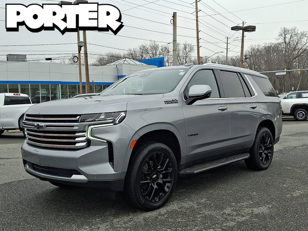 SUSPENSION MAGNETIC RIDE CONTROL, REAR AXLE 3.23 RATIO, ENGINE 6.2L ECOTEC3 V8 with Dynamic Fuel Management Direct Injection and Variable Valve Timing includes aluminum block construction (420 hp [313 kW] @ 5600 rpm 460 lb-ft of torque [624 Nm] @ 4100 rpm) (STD), ADAPTIVE CRUISE CONTROL (Beginning with start of production through October 2 2022 vehicles will be forced to include (07Z) Not Equipped with Adaptive Cruise Control and Enhanced Automatic Emergency Braking which removes Adaptive Cruise Control and Enhanced Automatic Emergency Braking. Vehicles will instead include Electronic Cruise Control and Automatic Emergency Braking. See dealer for details or the window label for the features on a specific vehicle.), TRAILER SIDE BLIND ZONE ALERT, HITCH GUIDANCE WITH HITCH VIEW with image adjustment Pan/Zoom, ADVANCED TRAILERING PACKAGE includes (PZ8) Hitch Guidance with Hitch View (JL1) trailer brake controller and (UET) Smart Trailer Integration Indicator Also includes (UKV) Extended Side Blind Zone Alert.), TRANSMISSION 10-SPEED AUTOMATIC electronically controlled with overdrive includes Traction Select System including tow/haul (Standard with (L87) 6.2L EcoTec3 V8 engine only.) (STD), SUNROOF POWER PANORAMIC DUAL-PANE TILT-SLIDING with express-open and close and power sunshade, LPO 22 (55.9 CM) MULTI-SPOKE GLOSS BLACK WHEELS LPO wheels will come with 4 steel 22 wheels from the factory with alignment specs set to 22 LPO wheel selected (dealer-installed) (Includes factory-installed wheel locks and not (SFE) wheel locks LPO., COOLING SYSTEM EXTRA CAPACITY, LPO BLACK BOWTIE EMBLEMS FRONT AND REAR (dealer-installed), HIGH COUNTRY PREFERRED EQUIPMENT GROUP includes standard equipment, AUDIO SYSTEM CHEVROLET INFOTAINMENT 3 PREMIUM SYSTEM WITH GOOGLE BUILT-IN 10.2 diagonal HD color touchscreen includes multi-touch display AM/FM stereo Bluetooth streaming audio for music and most phones; featuring wireless Android Auto and Apple CarPlay capability for compatible phones advanced voice recognition in-vehicle apps personalized profiles for infotainment and vehicle settings (STD), TRAILER BRAKE CONTROLLER INTEGRATED, SEATS FRONT BUCKET (STD), SUSPENSION PACKAGE AIR RIDE ADAPTIVE, WHEEL 22 X 9.0 STEEL INTERIM, GVWR 7500 LBS. (3402 KG) (STD), LPO BLACK NAMEPLATES, STERLING GRAY METALLIC, SMART TRAILER INTEGRATION INDICATOR, JET BLACK PERFORATED LEATHER SEATING SURFACES 1ST AND 2ND ROW, LPO WHEEL LOCKS SET OF 4 (dealer-installed) (Beginning with start of production certain vehicles will be forced to include (RFV) Not Equipped with (SFE) Wheel Locks LPO which removes (SFE) Wheel Locks LPO. See dealer for details or the window label for the features on a specific vehicle. Included with any 22 RPO wheels. Not available with any LPO wheels. Note that LPO 22 wheels will come with wheel locks without the LPO code (SFE).), MAX TRAILERING PACKAGE includes (ZL6) Advanced Trailering Package and (V03) extra capacity cooling system, Active Suspension, Immobilizer, Keyless Start, Locking/Limited Slip Differential, Four Wheel Drive, Tow Hitch, Power Steering, ABS, 4-Wheel Disc Brakes, Wheel Locks, Tires - Front Performance, Tires - Rear Performance, Conventional Spare Tire, Conventional Spare Tire, Luggage Rack, Running Boards/Side Steps, Automatic Highbeams, Heated Mirrors, Power Mirror(s), Integrated Turn Signal Mirrors, Power Folding Mirrors, Privacy Glass, Intermittent Wipers, Variable Speed Intermittent Wipers, Rain Sensing Wipers, Intermittent Wipers, Remote Trunk Release, Power Liftgate, AM/FM Stereo, MP3 Capability, Bluetooth Connection, Auxiliary Audio Input, Smart Device Integration, Premium Sound System, MP3 Capability, Bluetooth Connection, Auxiliary Audio Input, Navigation System, Satellite Radio, T