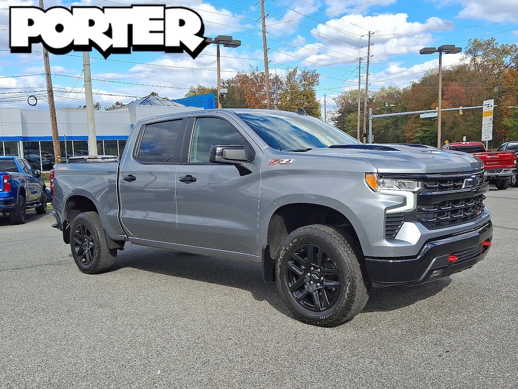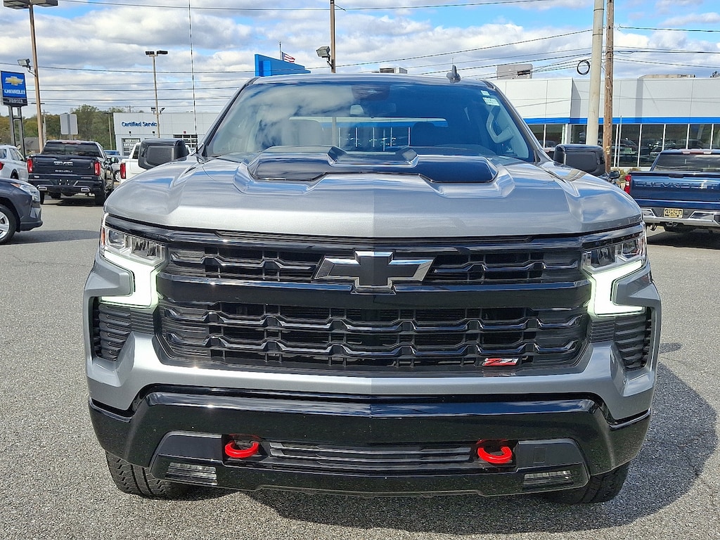 GVWR 7100 LBS. (3221 KG), USB PORTS 2 CHARGE/DATA PORTS LOCATED INSIDE CENTER CONSOLE, COOLING EXTERNAL ENGINE OIL COOLER, LPO MOLDED SPLASH GUARDS BLACK (dealer-installed), ALTERNATOR 170 AMPS, LICENSE PLATE KIT FRONT, AUDIO SYSTEM CHEVROLET INFOTAINMENT 3 PREMIUM SYSTEM with Google built-in compatibility (select service plan required terms and limitations apply) including navigation capability 13.4 diagonal HD color touchscreen includes multi-touch display AM/FM stereo Bluetooth streaming audio for music and most phones; featuring Wireless Apple CarPlay and Wireless Android Auto capability for compatible phones advanced voice recognition in-vehicle apps personalized profiles for infotainment and vehicle settings (STD), WHEELS 20 X 9 (50.8 CM X 22.9 CM) HIGH GLOSS BLACK PAINTED ALUMINUM (STD), ENGINE 5.3L ECOTEC3 V8 (355 hp [265 kW] @ 5600 rpm 383 lb-ft of torque [518 Nm] @ 4100 rpm); featuring available Dynamic Fuel Management that enables the engine to operate in 17 different patterns between 2 and 8 cylinders depending on demand to optimize power delivery and efficiency (Includes (N10) dual exhaust.), WIRELESS CHARGING, TRANSMISSION 10-SPEED AUTOMATIC with Electronic Transmission Range Selector (ETRS) electronically controlled with overdrive tow/haul mode and steering column paddle shifters. Includes Cruise Grade Braking and Powertrain Grade Braking, REAR AXLE 3.23 RATIO, LT TRAIL BOSS PREFERRED EQUIPMENT GROUP includes standard equipment, SEATS FRONT BUCKET with center console (Includes (EPH) Electronic Transmission Range Selector (console mounted)., TIRES 275/60R20SL ALL-TERRAIN BLACKWALL (STD), SHIFTER ELECTRONIC TRANSMISSION RANGE SELECTOR includes steering column paddle shifters, STERLING GRAY METALLIC, TIRE SPARE 255/80R17SL ALL-SEASON BLACKWALL, COOLING AUXILIARY EXTERNAL TRANSMISSION OIL COOLER, EXHAUST DUAL WITH POLISHED OUTLETS, JET BLACK CLOTH SEAT TRIM, CENTER CONSOLE FLOOR-MOUNTED with cup holders Wireless Charging power cord management hanging file folder capability; includes removable storage tray Includes (EPH) Electronic Transmission Range Selector (console mounted).), Tow Hitch, Lane Departure Warning, Lane Keeping Assist, Front Collision Mitigation, Front Collision Warning, Automatic Highbeams, Climate Control, Multi-Zone A/C, A/C, Security System, Rear Defrost, Keyless Entry, Power Door Locks, Power Driver Seat, Adjustable Steering Wheel, Heated Front Seat(s), Driver Adjustable Lumbar, Remote Engine Start, Keyless Start, Heated Steering Wheel, Keyless Start, Locking/Limited Slip Differential, Four Wheel Drive, Tow Hooks, Power Steering, ABS, 4-Wheel Disc Brakes, Aluminum Wheels, Tires - Front All-Terrain, Tires - Rear All-Terrain, Tires - Front All-Season, Tires - Rear All-Season, Daytime Running Lights, LED Headlights, Automatic Highbeams, Fog Lamps, Heated Mirrors, Power Mirror(s), Privacy Glass, AM/FM Stereo, Navigation System, MP3 Capability, Bluetooth Connection, Auxiliary Audio Input, Smart Device Integration, Requires Subscription, Satellite Radio, Requires Subscription, Bluetooth Connection, Smart Device Integration, Bluetooth Connection, WiFi Hotspot, Split Bench Seat, Cloth Seats, Power Driver Seat, Driver Adjustable Lumbar, Heated Front Seat(s), Pass-Through Rear Seat, Rear Bench Seat, Floor Mats, Heated Steering Wheel, Steering Wheel Audio Controls, Adjustable Steering Wheel, Power Windows, Power Windows, Power Door Locks, Remote Engine Start, Keyless Entry, Power Door Locks, Keyless Start, Cruise Control, Security System, MP3 Capability, Auxiliary Audio Input, Climate Control, Multi-Zone A/C, A/C, A/C, Rear A/C, Rear Defrost, Front Collision Mitigation, Front Collision Warning, Front Collision Mitigation, Traction Control, Stability Control, Dayti