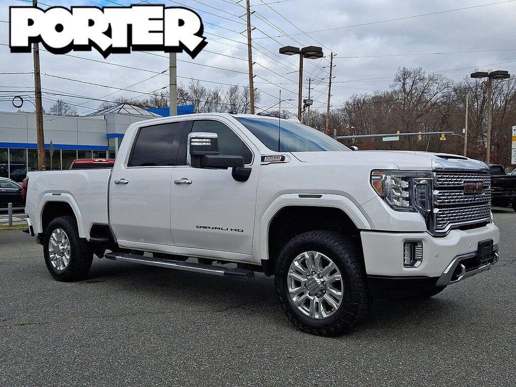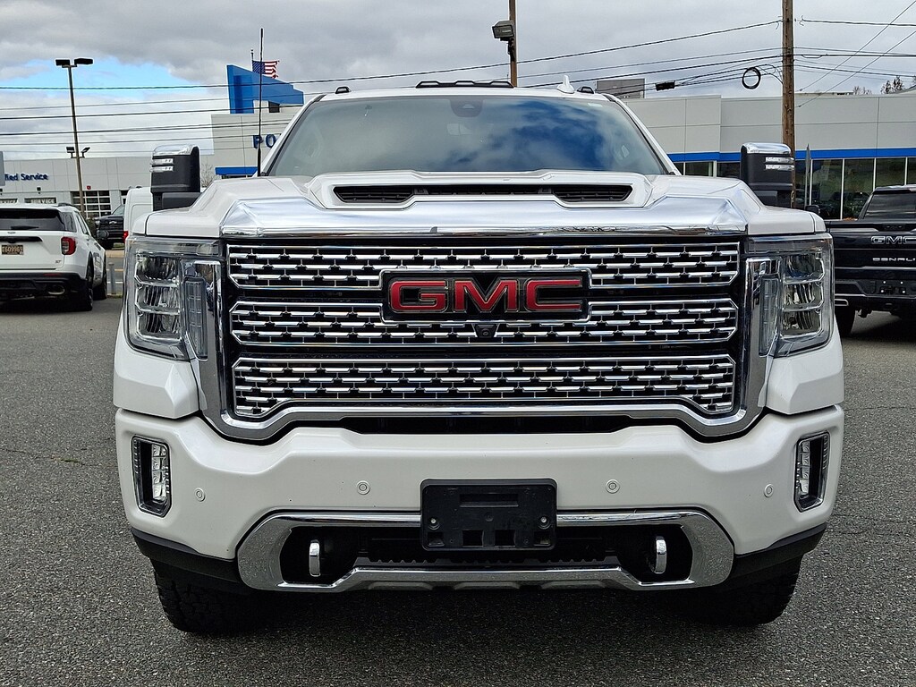 LICENSE PLATE KIT FRONT, TRANSMISSION ALLISON 10-SPEED AUTOMATIC, GVWR 11 350 LBS. (5148 KG), AUDIO SYSTEM PREMIUM GMC INFOTAINMENT SYSTEM WITH NAVIGATION AND 8 DIAGONAL COLOR TOUCH-SCREEN includes multi-touch display AM/FM stereo Bluetooth streaming audio for music and most phones; featuring Android Auto and Apple CarPlay capability for compatible phones advanced voice recognition in-vehicle apps personalized profiles for infotainment and vehicle settings. Includes greater memory. (Includes (PZ8) Hitch Guidance with hitch view. (STD), DENALI PREFERRED EQUIPMENT GROUP includes standard equipment, DENALI ULTIMATE PACKAGE includes (CWM) Technology Package and (CF5) power sunroof, LPO REAR UNDERSEAT STORAGE COMPOSITE STORAGE BIN Crew Cab includes lockable lid, GOOSENECK / 5TH WHEEL PREP PACKAGE -- HITCH PLATFORM TO ACCEPT GOOSENECK OR 5TH WHEEL HITCH. Includes hitch platform with tray to accept ball stamped bed holes with removable caps installed and bed mounted 7-pin trailer harness (similar to UY2 harness)., WINTER GRILLE COVER, WHITE FROST TRICOAT, ENGINE BLOCK HEATER, SUNROOF POWER, SEATS FRONT BUCKET with center console (STD), BED VIEW CAMERA camera in the CHMSL to show a view of the cargo bed includes Two Trailer Camera Provisions, REAR CAMERA MIRROR INSIDE REARVIEW AUTO-DIMMING WITH FULL CAMERA DISPLAY, REAR AXLE 3.42 RATIO, TECHNOLOGY PACKAGE includes (UVS) HD Surround Vision (DRZ) Rear Camera Mirror (UVN) Bed View Camera and (UV6) Multicolor 15 Diagonal Head-Up Display, ENGINE DURAMAX 6.6L TURBO-DIESEL V8 B20-DIESEL COMPATIBLE (445 hp [332 kW] @ 2800 rpm 910 lb-ft of torque [1220 Nm] @ 1600 rpm) (Includes (K05) engine block heater.), LPO ALL-WEATHER FLOOR LINER 1ST AND 2ND ROWS, HD SURROUND VISION WITH TWO TRAILER VIEW CAMERA PROVISIONS provides the driver with an overhead view of the scene around the vehicle on a center stack display, EXHAUST BRAKE, PICKUP BED includes bed assist step (STD), GOOSENECK / 5TH WHEEL PACKAGE includes (Z6A) Gooseneck / 5th Wheel Prep Package. (Includes (UVN) Bed View Camera.), ALTERNATOR 220 AMPS, MULTICOLOR 15 DIAGONAL HEAD-UP DISPLAY, JET BLACK FORGE PERFORATED LEATHER-APPOINTED SEAT TRIM, Rear Parking Aid, Blind Spot Monitor, Lane Departure Warning, Cross-Traffic Alert, Lane Departure Warning, Front Collision Mitigation, Front Collision Warning, Automatic Highbeams, Tow Hitch, Running Boards/Side Steps, Locking/Limited Slip Differential, Four Wheel Drive, Tow Hooks, Power Steering, ABS, 4-Wheel Disc Brakes, Aluminum Wheels, Tires - Front All-Terrain, Tires - Rear All-Terrain, Conventional Spare Tire, Running Boards/Side Steps, Bed Liner, Daytime Running Lights, Automatic Highbeams, Fog Lamps, Heated Mirrors, Power Mirror(s), Integrated Turn Signal Mirrors, Power Folding Mirrors, Privacy Glass, Integrated Tailgate Step, AM/FM Stereo, Navigation System, MP3 Capability, Bluetooth Connection, Auxiliary Audio Input, Smart Device Integration, HD Radio, Satellite Radio, Requires Subscription, Premium Sound System, Bluetooth Connection, WiFi Hotspot, Bucket Seats, Leather Seats, Heated Front Seat(s), Cooled Front Seat(s), Power Driver Seat, Driver Adjustable Lumbar, Power Passenger Seat, Passenger Adjustable Lumbar, Heated Front Seat(s), Heated Front Seat(s), Cooled Front Seat(s), Mirror Memory, Seat Memory, Heated Rear Seat(s), Pass-Through Rear Seat, Rear Bench Seat, Floor Mats, Floor Mats, Leather Steering Wheel, Heated Steering Wheel, Steering Wheel Audio Controls, Adjustable Steering Wheel, Power Windows, Power Windows, Power Windows, Rear Defrost, Sliding Rear Window, Power Door Locks, Keyless Entry, Power Door Locks, Keyless Start, Remote Engine Start, Universal Garage Door Opener, Cruise Control, Security System, MP3 Capability, Auxiliary Audio Input, MP3 Capability, Auxiliary Audio Input, P