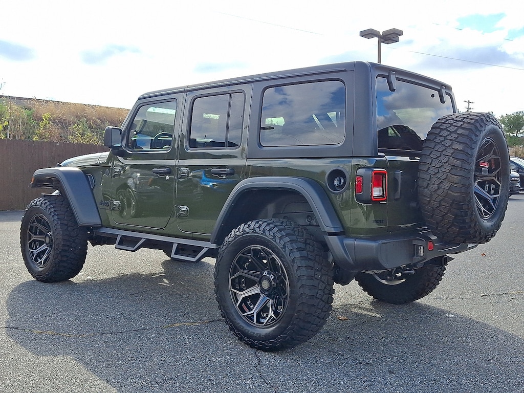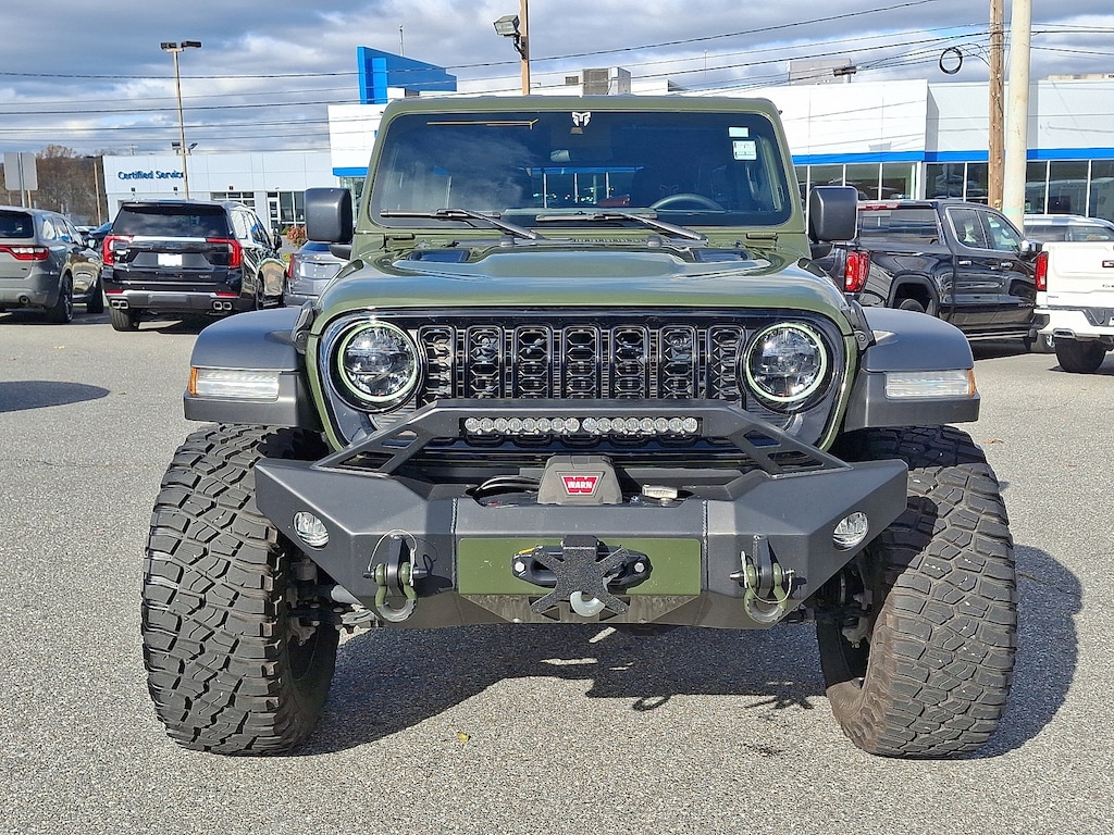 TIRES: LT285/70R17C BSW OFF-ROAD, WILLY'S SUSPENSION (STD), TECHNOLOGY GROUP -inc: 240 Amp Alternator Alpine Premium Audio System, WHEELS: 17 X 7.5 PAINTED BLACK (STD), ENGINE: 3.6L V6 24V VVT UPG I W/ESS (STD), TRANSMISSION: 8-SPEED AUTOMATIC (850RE) -inc: Adaptive Cruise Control w/Stop Anti-Lock 4-Wheel Disc Brakes Dana M200 Rear Axle Selec-Speed Control, QUICK ORDER PACKAGE 24W WILLYS -inc: Engine: 3.6L V6 24V VVT UPG I w/ESS Transmission: 8-Speed Automatic (850RE) Speed Sensitive Power Locks 7 & 4 Pin Wiring Harness Conventional Differential Front Axle 4-Wheel Drive Swing Gate Decal Black Grille Injection Molded Black Rear Bumper Dana M210 Wide HD Tube Front Axle Front 1-Touch Down Power Windows Daytime Running Lamps LED Accents Front LED Fog Lamps LED Premium Reflector Headlamps E-Locker Rear Axle Corning Gorilla Glass Security Alarm Willys Class II Receiver Hitch Mold In Color Bumper w/Gloss Black Advanced Brake Assist Automatic Headlamps Off-Road Plus Mode 240 Amp Alternator Willys Hood Decal Full Speed Forward Collision Warning Plus Rock Protection Sill Rails 97 MPH Vehicle Max Speed Calibration Power Heated Mirrors Enhanced Adaptive Cruise Control Auxiliary Switches Dana M220 Wide Rear Axle Molded in Color Rubicon Highline Flare Premium Wrapped Steering Wheel Sun Visors w/Illuminated Vanity Mirro, BLACK 3-PIECE HARD TOP -inc: Freedom Panel Storage Bag Rear Window Defroster Rear Window Wiper/Washer No Soft Top, CONVENIENCE GROUP -inc: Emergency/Assistance Call 2-Door Passive Entry Front Door Locks Remote Start System Cluster 7.0 TFT Color Display Universal Garage Door Opener Heated Front Seats Air Conditioning w/Auto Temp Control Heated Steering Wheel Air Filtering, GVWR: 5 675 LBS (STD), BLACK CLOTH LOW-BACK BUCKET SEATS, 4.10 REAR AXLE RATIO (STD), SARGE GREEN CLEARCOAT, Four Wheel Drive, Power Steering, ABS, 4-Wheel Disc Brakes, Brake Actuated Limited Slip Differential, Aluminum Wheels, Tires - Front On/Off Road, Tires - Rear On/Off Road, Conventional Spare Tire, Tow Hooks, Tow Hooks, Intermittent Wipers, Variable Speed Intermittent Wipers, Privacy Glass, Rollover Protection Bars, Convertible Soft Top, AM/FM Stereo, Bluetooth Connection, MP3 Capability, Steering Wheel Audio Controls, Auxiliary Audio Input, Bluetooth Connection, Driver Adjustable Lumbar, Driver Adjustable Lumbar, Pass-Through Rear Seat, Rear Bench Seat, Adjustable Steering Wheel, Trip Computer, Power Windows, WiFi Hotspot, Keyless Start, A/C, Cloth Seats, Bucket Seats, Floor Mats, Smart Device Integration, Power Windows, Trip Computer, Immobilizer, Traction Control, Stability Control, Traction Control, Front Side Air Bag, Tire Pressure Monitor, Driver Air Bag, Passenger Air Bag, Front Head Air Bag, Rear Head Air Bag, Passenger Air Bag Sensor, Child Safety Locks, Back-Up Camera